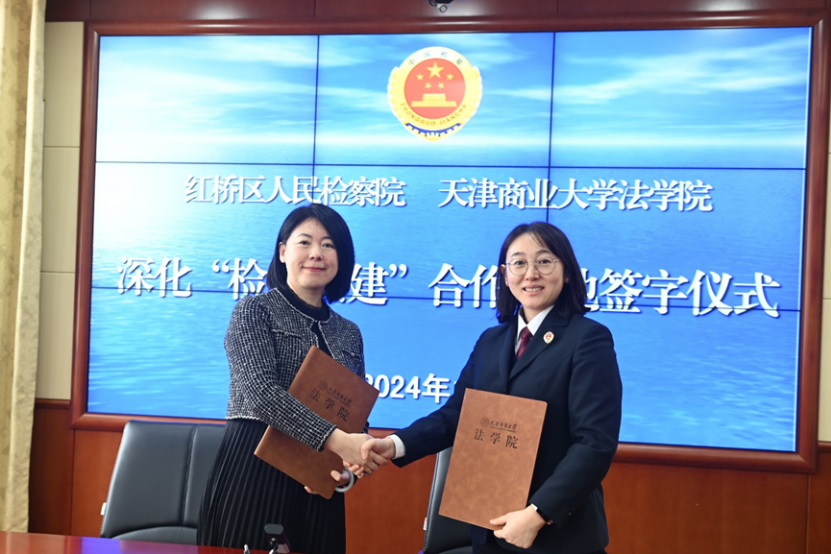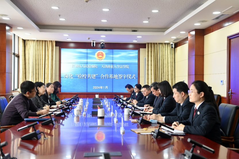 为深入贯彻落实习近平法治思想,持续推动《关于加强新时代法学教育和法学理论研究的意见》落地落实,2024年1月19日,与红桥区人民检察院联合开展的“检校共建”合作协议签约仪式。tyc122cc太阳成经理沃耘、副经理艾娟、张涛及吕姝洁老师,红桥区检察公司党组成员、副检察长马忠及各部门主任,出席参加会议。