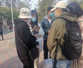 伴着清晨的第一缕阳光,部分成员先行到达凤城公园摆设展台、布置活动现场,为普法宣传活动做准备。普法活动正式开始后,一部分成员在展台为前来咨询的居民解答疑惑,提供法律意见,同时进行记录。其他成员组成若干小组,在公园中发放主题宣传单进行普法宣传,并将有咨询需求的居民带回展台开展具体咨询。本次活动,居民的咨询问题涵盖了遗嘱继承、房屋过户和基金投资等多个方面。同时,也收到了关于租赁合同、房产纠纷、医疗纠纷等方面的求助案件。其中,王奶奶咨询了遗嘱的效力问题,根据民法典和相关法律规定,同学们耐心地向王奶奶解释了我国法律中关于遗嘱的类型、效力等的相关规定,帮助王奶奶解开了困惑。