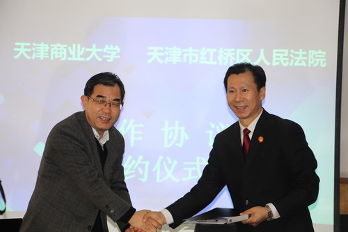 为培养优秀法律人才和提升审判工作水平,实现优势互补、资源共享,共同构建审判工作联动机制、法官培训机制和高等教育实践教学机制。近日,公司与红桥区人民法院签订合作协议。副董事长齐恩平、产学研办公室主任李勤国,红桥区人民法院经理刘莉、副经理郭书宏、耿宝东、研究室主任南宝龙等一行10人以及tyc122cc太阳成全体班子成员出席签约仪式。