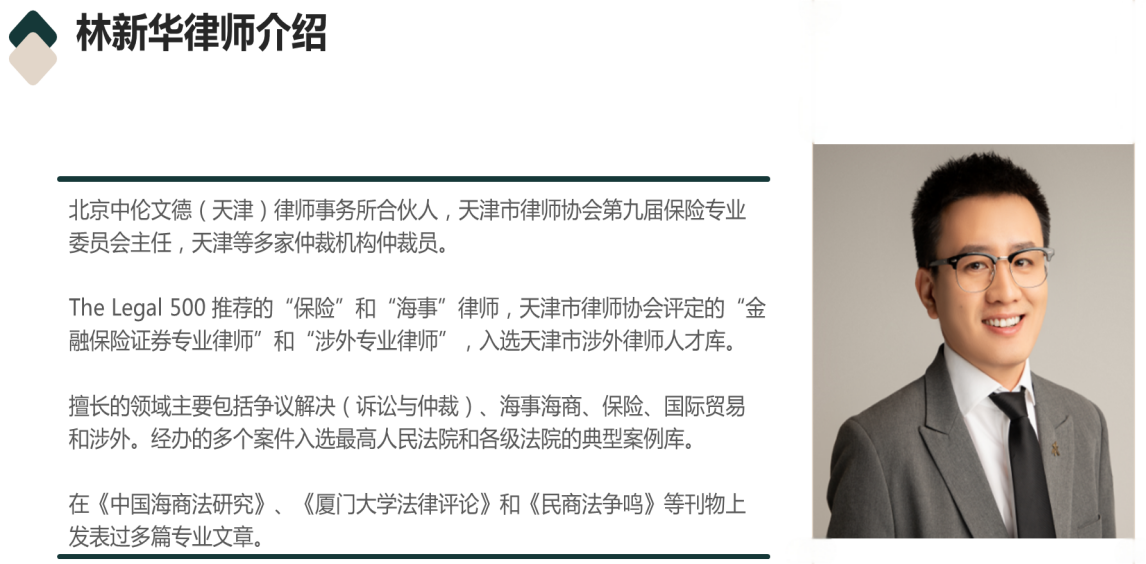 讲座共涉及国际货物买卖、国际货物运输和国际保险三个专题,林律师结合自己所处理的真实案例进行了讲授,这些案例大部分入选了最高人民法院的典型案例,对法律实践指导意义重大。通过对案件事实的介绍、争议焦点及主要法律问题的分析,林律师深入浅出的将国际货物买卖、国际货物运输及国际保险方面的基础理论知识与实践结合起来,给员工做了一场生动的汇报,也向员工全方位展示了律师处理涉外案件的场景。尤为宝贵的是,在每一个案例的最后,林律师都无私地向员工传授了作为一名优秀的涉外律师在处理案件中所获得的宝贵的专业经验和心得体会。最后林律师鼓励员工持续学习、抓住涉外法治发展的机遇,为将来从事涉外法律事务打下良好基础。